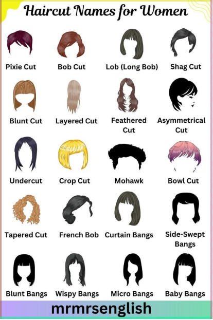Como ya uso en otros experimentos el ponytail, creo que lo mejor es elegir uno diferente. Esta lista tiene nombres en inglés útiles para la generación de imágenes en descripciones. Esta dama sería de cabello corto, no tiene tiempo para un peinado complicado, es preparatoria y se viste con clase.